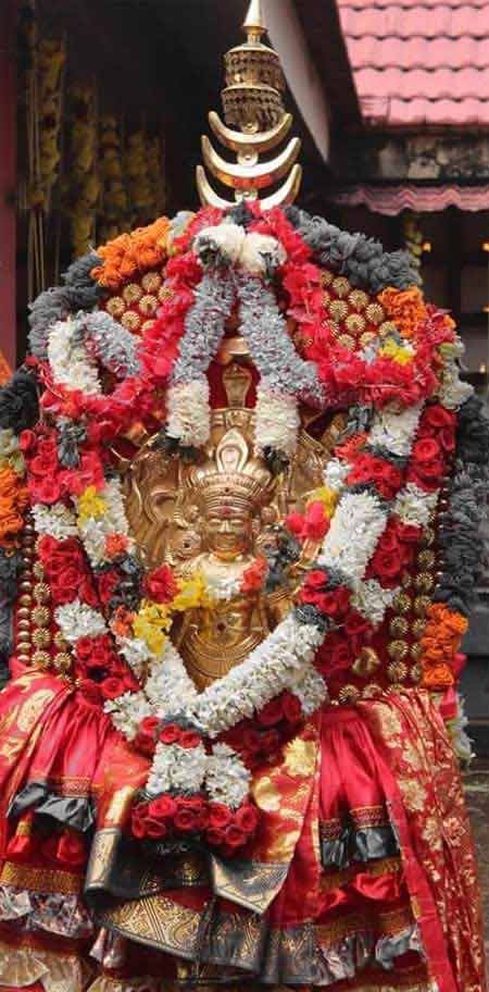During that time, a Yakshi (Demon) named Elambi was creating problems in that area. Amma killed Elambi and her cronies. Elambi’s Mani (bell) was thrown southwards in the area. Since the Mani was thrown, Elambanakkadu came to be known as Maniyerkadu – later became Manarcad.